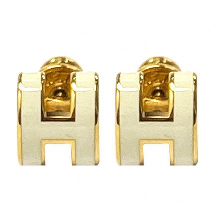 • [에르메스] H608002F 49 미니 팝아슈 골드 하드웨어 이어링 블랑 귀걸이