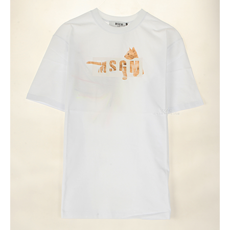 • [MSGM] 20SS 2842MDM269 207498 01 캣로고 라운드 반팔티셔츠 화이트 여성 티셔츠