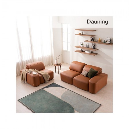 • 다우닝 브릭 3인 헤드레스트 전체 천연가죽 소파+스툴 (색상:꼬냑)